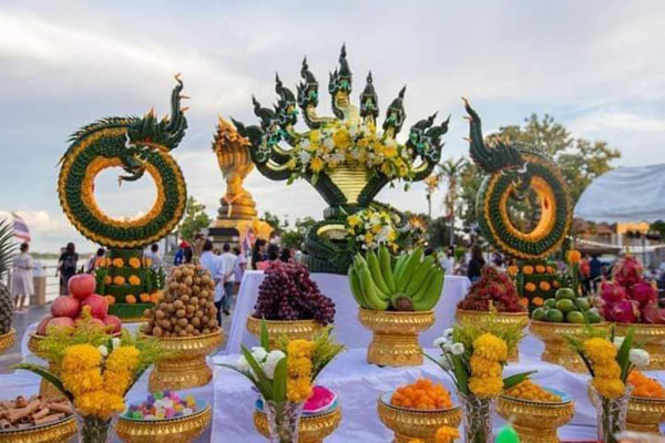 - เครื่องเซ่นไหว้: บายศรี อาหารคาวหวาน ผลไม้ น้ำดื่ม ดอกไม้ ธูปเทียน